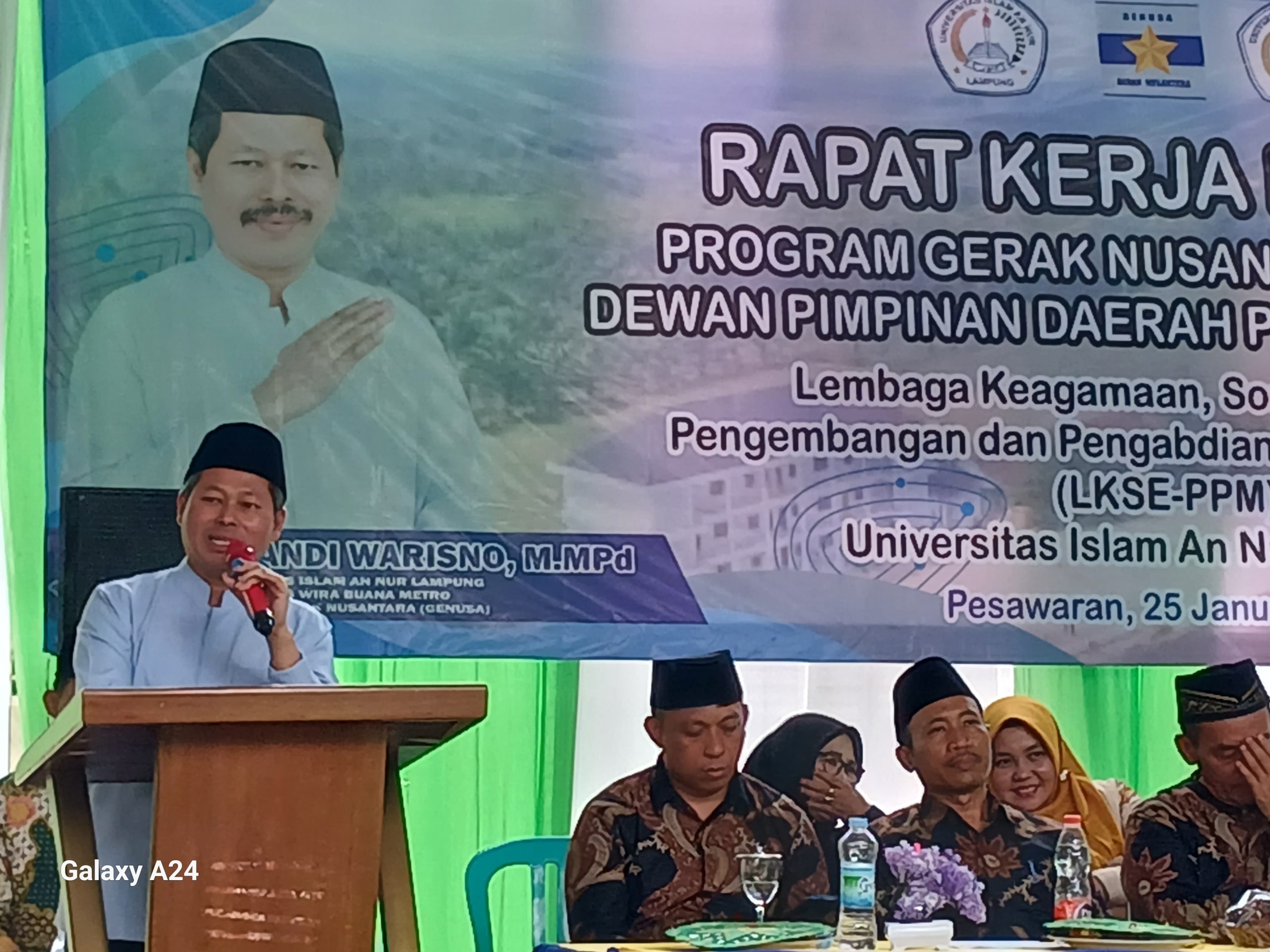 Rakerda DPD GENUSA Provinsi Lampung ke satu ini dihadir perwakilan 15 kabupaten koto seprovinsi Lampung yang juga masing-masing diantaranya adalah sebagai guru – guru besar S1, S2 di Universitas An Nur Lampung.