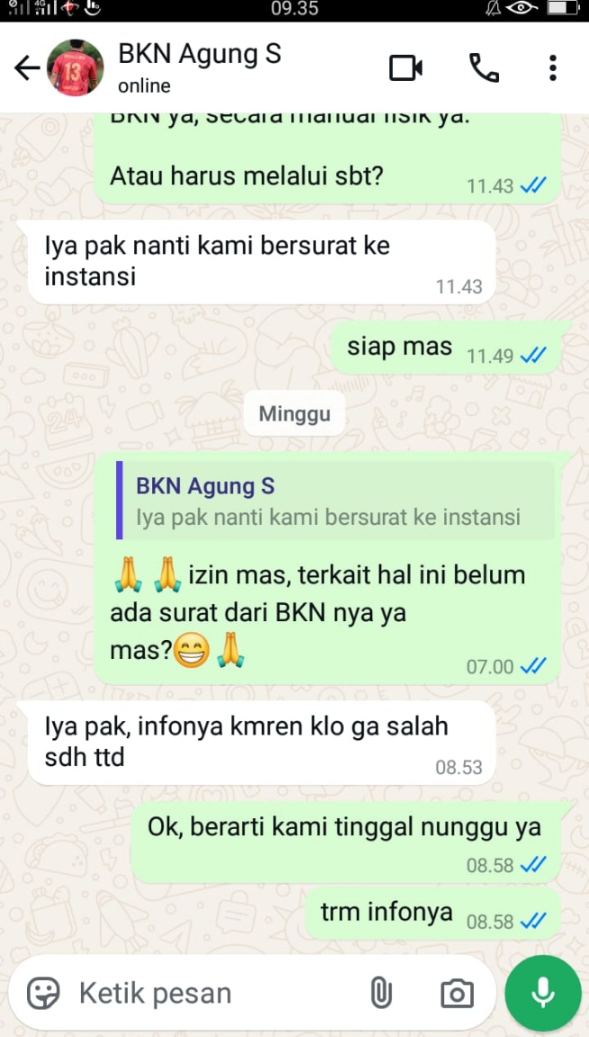 Bukti screenshot chating WhatsApp BKN dan BKD Lampung Selatan