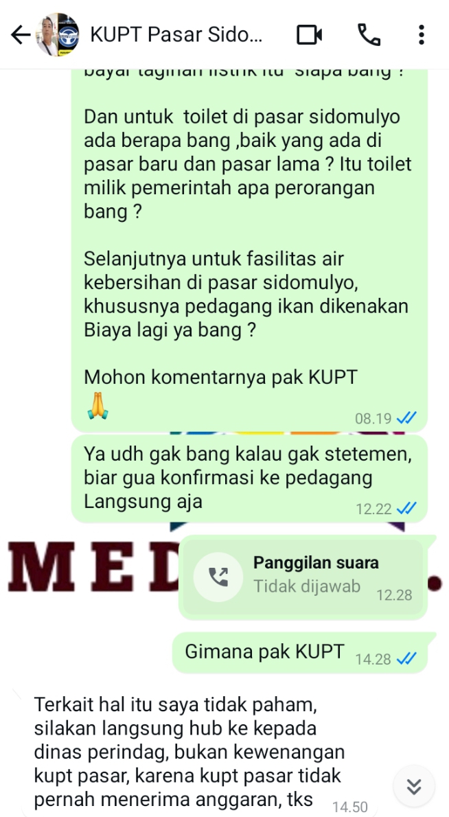 Foto screenshot chat WhatsApp KUPT Pasar Sidomulyo