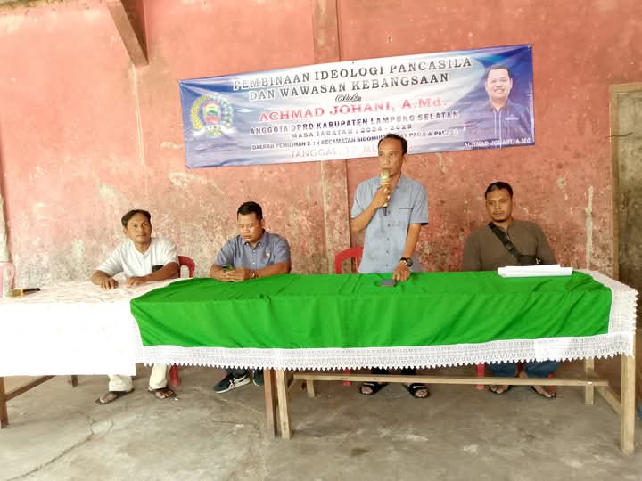 Anggota DPRD Achmad Johani Pembinaan IPWK di Desa Seloretno Mei 17, 2025Mei 18, 2025oleh Redaksi Mediari-2,011 views SIDOMULYO,-Foto kegiatan Anggota DPRD Lampung Selatan Achmad Johani A.Md Sosialisasi Pembinaan Ideologi Pancasila dan Wawasan Kebangsaan (IPWK) di Desa Seloretno pada Sabtu ,18 Mei 2025. Sambutan Kepada Desa Seloretno Sobari Suasana sosialisasi (*) Jangan LewatkanKisruh Penggunaan APBDes Di Pemberitaan Online, Kades Bumijaya Candipuro Tegaskan Sudah Sesuai AturanMiftahul Bahri.ST. “DPD Partai NasDem Lampung Selatan Santuni 100 Anak Yatim Sambut HUT ke-14 “Koramil 421-09/Tanjung Bintang Dipenuhi Karangan Bunga Ucapan Selamat HUT TNI ke-80Ka UPTD Puskesmas Talang Jawa Lakukan Monitoring Program Makan Bergizi Gratis (MBG), Dapur MBG Penuhi Standar KualitasKodim 0421/Lampung Selatan Gelar Ziarah Nasional dan Tabur Bunga di TMP Kusuma Bangsa
