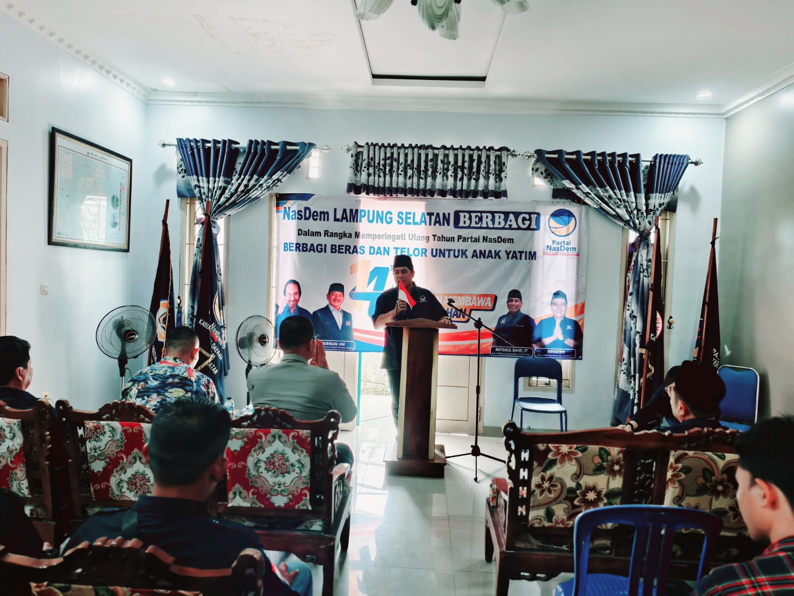 Ketua DPD NasDem Lampung Selatan, Miftahul Bahri, ST, dalam sambutannya menyampaikan rasa terima kasih kepada masyarakat atas dukungan di Pemilu 2024 lalu.