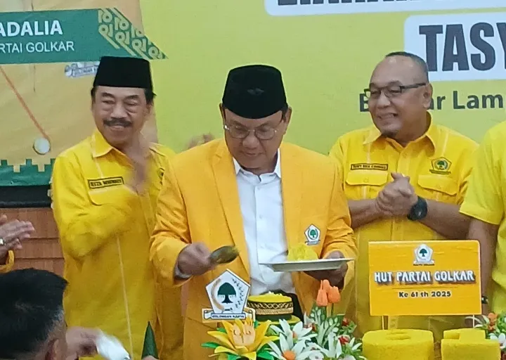 Lampung Selatan,- Partai Golkar Provinsi Lampung, gelar tasyakuran dalam rangka hut Golkar ke 61, yang dilaksanakan di aula partai golkar pada hari Senin (20/10/2025).