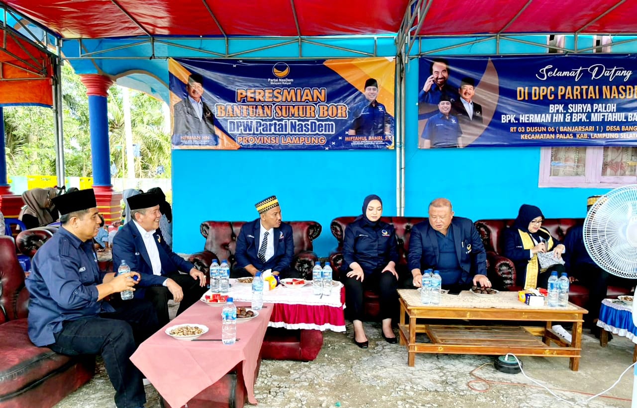 MEDIA RI.,Lampung Selatan_ Suasana Desa Bangunan, Kecamatan Palas, Kabupaten Lampung Selatan, Sabtu (25/10/2025) pagi terasa berbeda. Ratusan warga berkumpul dengan wajah sumringah menyambut kedatangan Sekretaris Jenderal DPP Partai NasDem, Hermawi Taslim, SH, MH, yang hadir untuk meresmikan sumur bor bantuan Partai NasDem melalui program sosial Laga Perubahan.