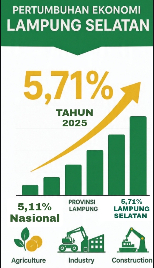 Dengan 5,71%, Lampung Selatan masuk jajaran daerah dengan pertumbuhan ekonomi tertinggi di Provinsi Lampung. Pemerintah daerah menyebut tren ini sebagai sinyal positif bagi iklim investasi dan penciptaan lapangan kerja.
